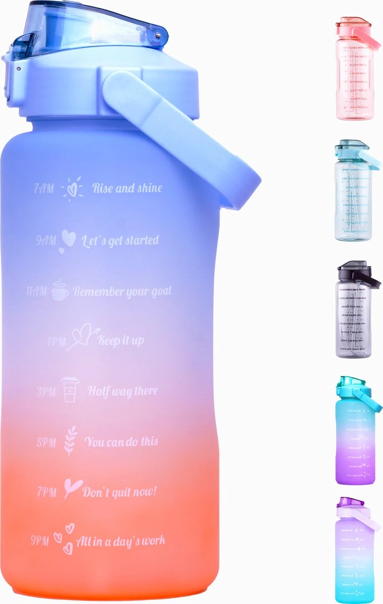By Bresi – Waterfles 2 Liter Blauw/Oranje – Gratis Armband – Waterfles Met Rietje – Grote Waterfles – Sportbidon – Twee Liter Waterfles – Sportfles – Sportfles Fitness – Bottle 2 Liter- Drinkfles – Schenkfles – Drinkbus – Waterflessen