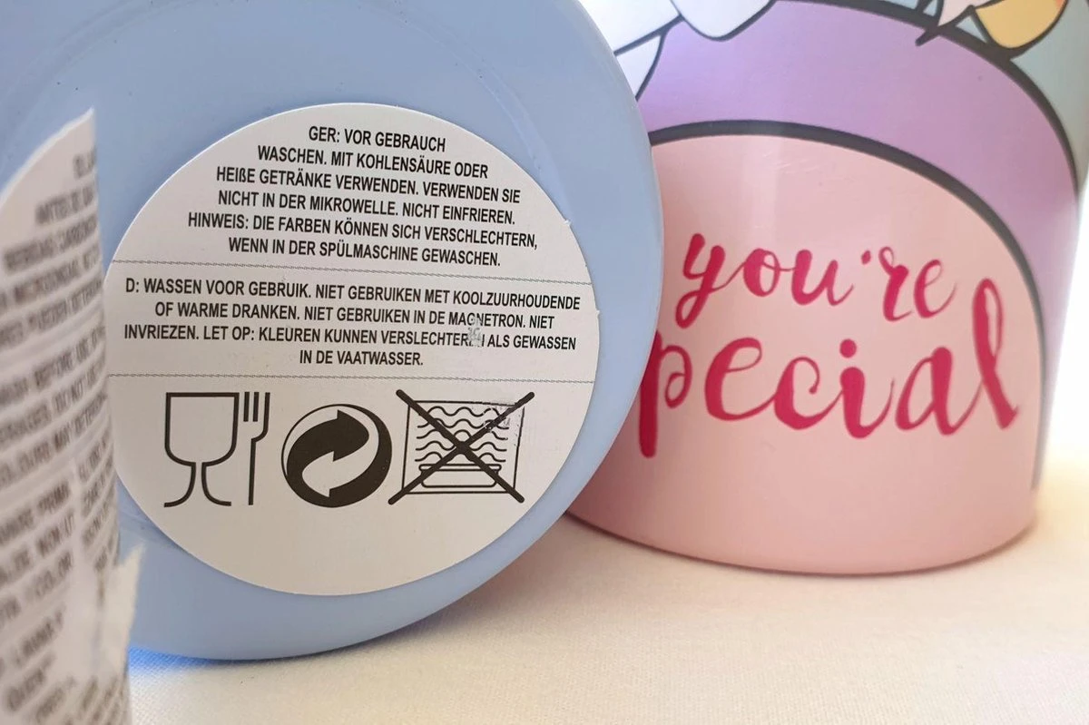De drinkfles is niet geschikt voor warme dranken (geen thermosfles) en niet in de magnetron. In de vaatwasser kunnen mogelijk de kleuren vervagen.