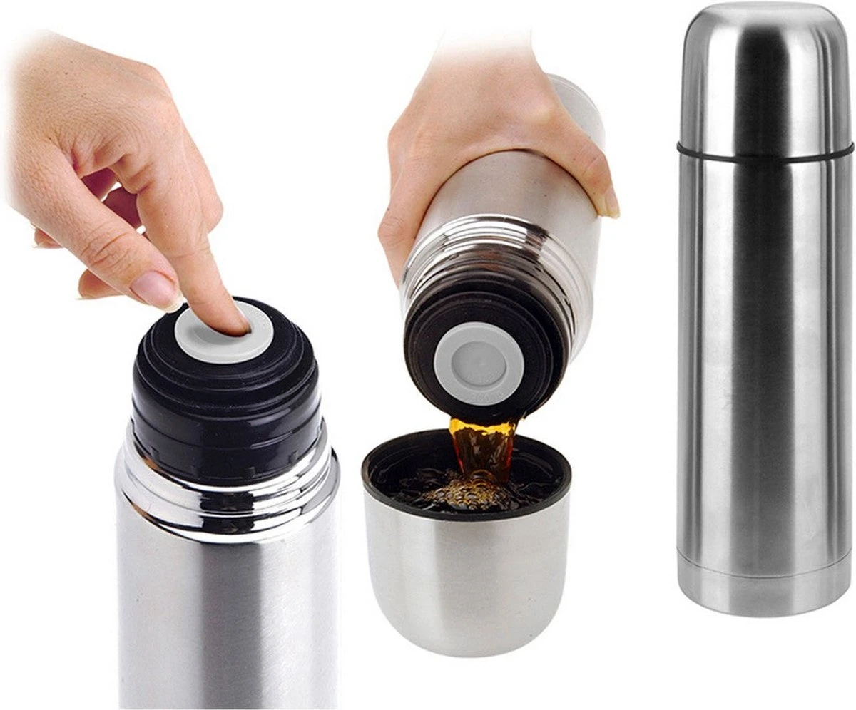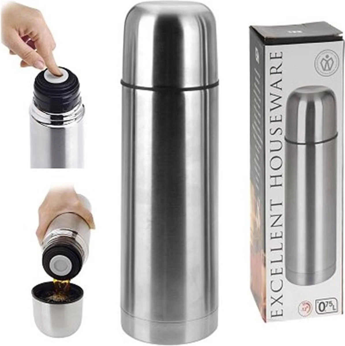Excellent Basis Thermoskan | Isolatiekan Bullet 0.75 Ltr | Roestvrijstale Drinkbeker | Zilver