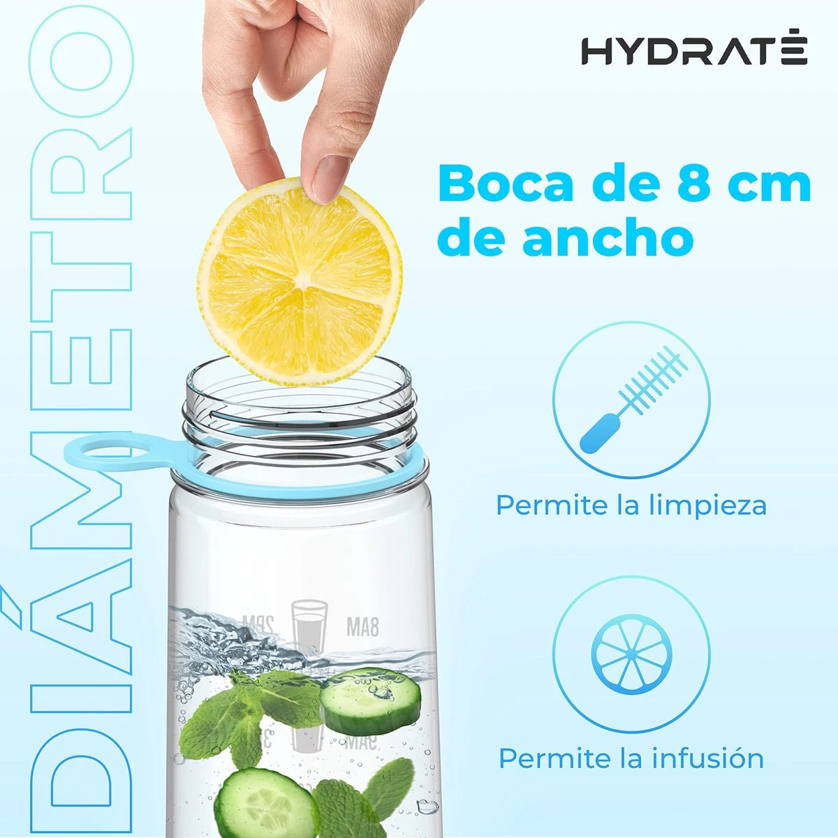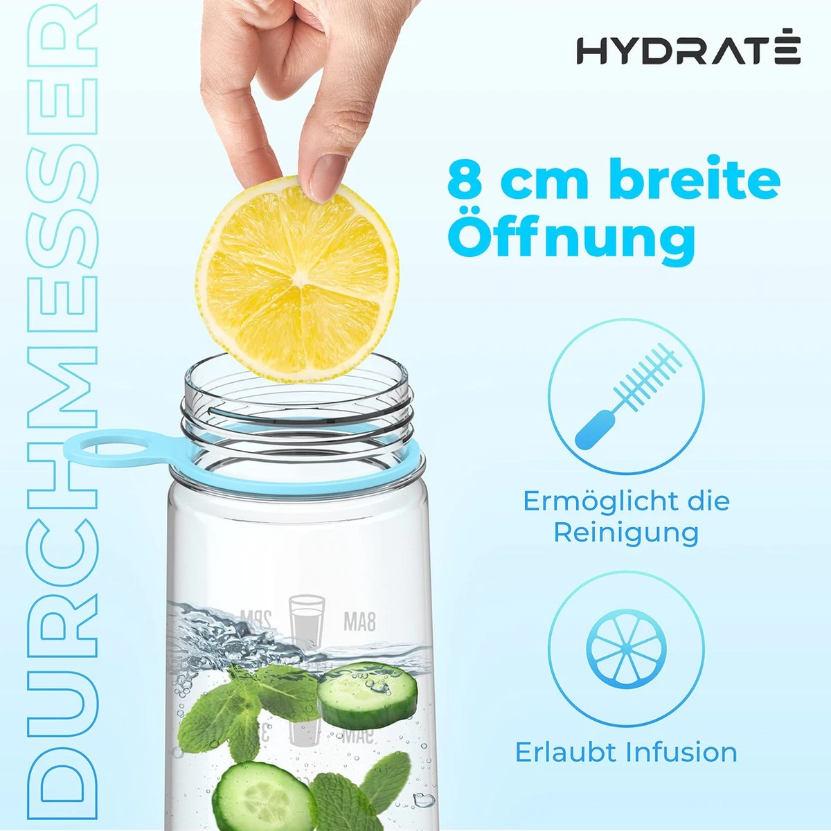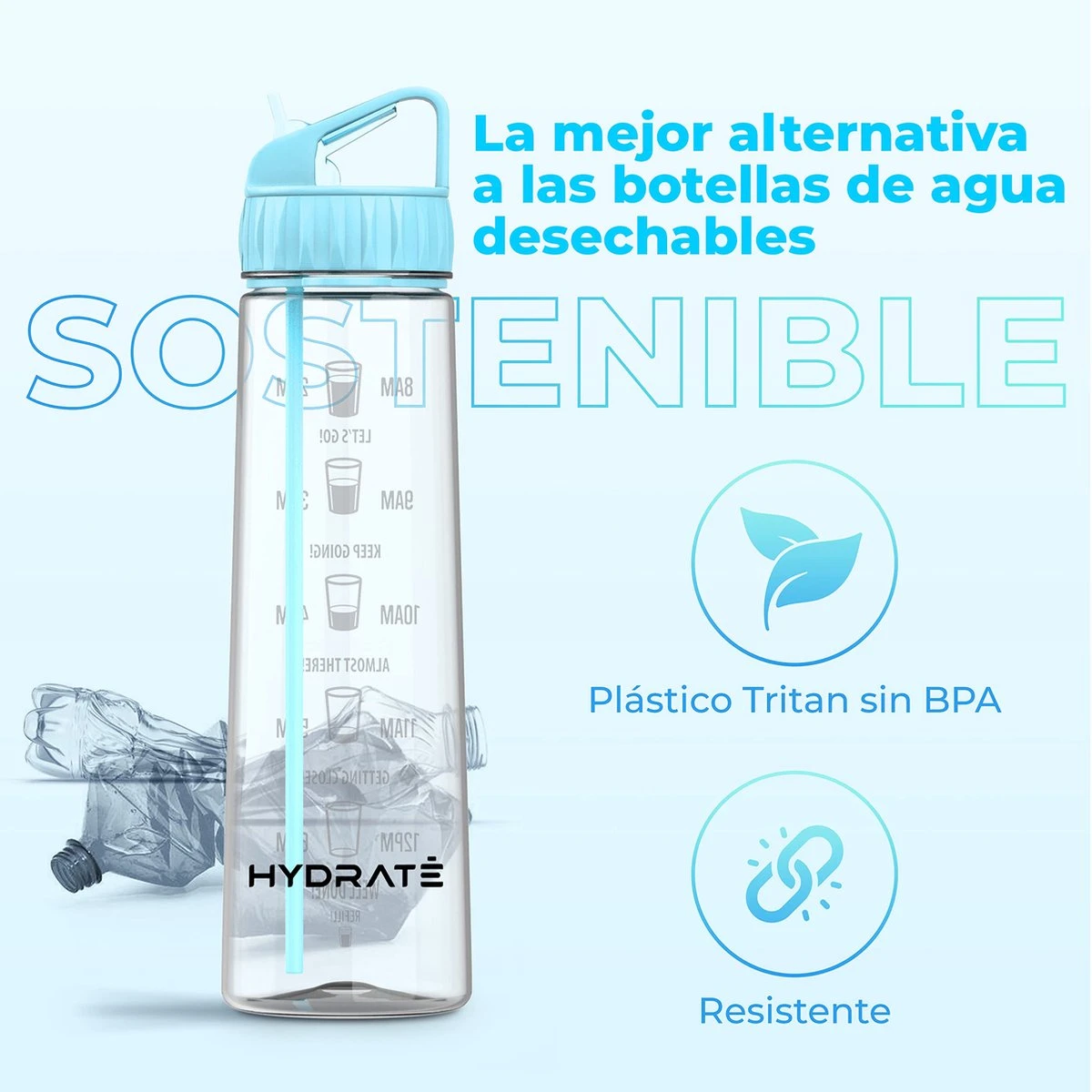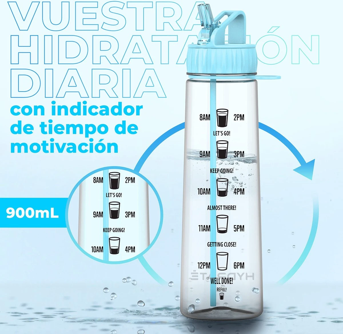 HYDRATE 900ml Drinkfles Met Tijdmarkeringen – Sport Waterfles Met Rietje, BPA-vrije Drinkfles Rietje Van Tritan Ideaal Voor Sportschool, Kantoor, Wandelen, Fitness, Sportfles (Hemelsblauw)