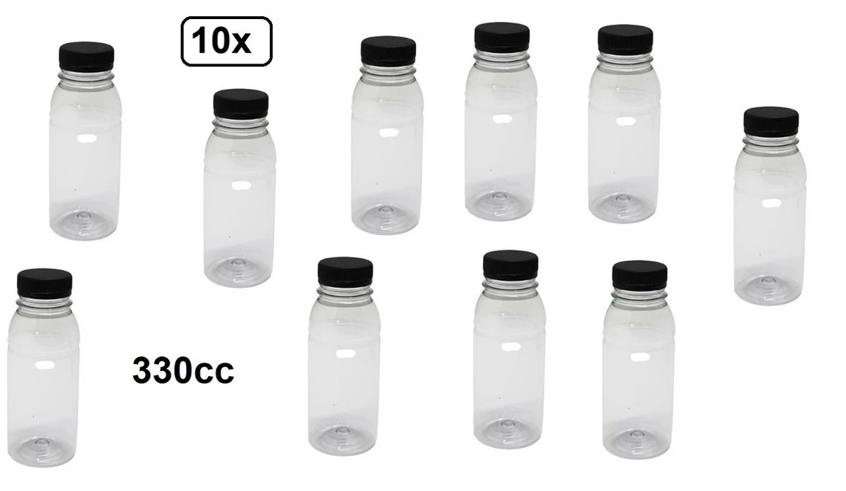 10x Flesje PET helder 330cc met zwarte dop