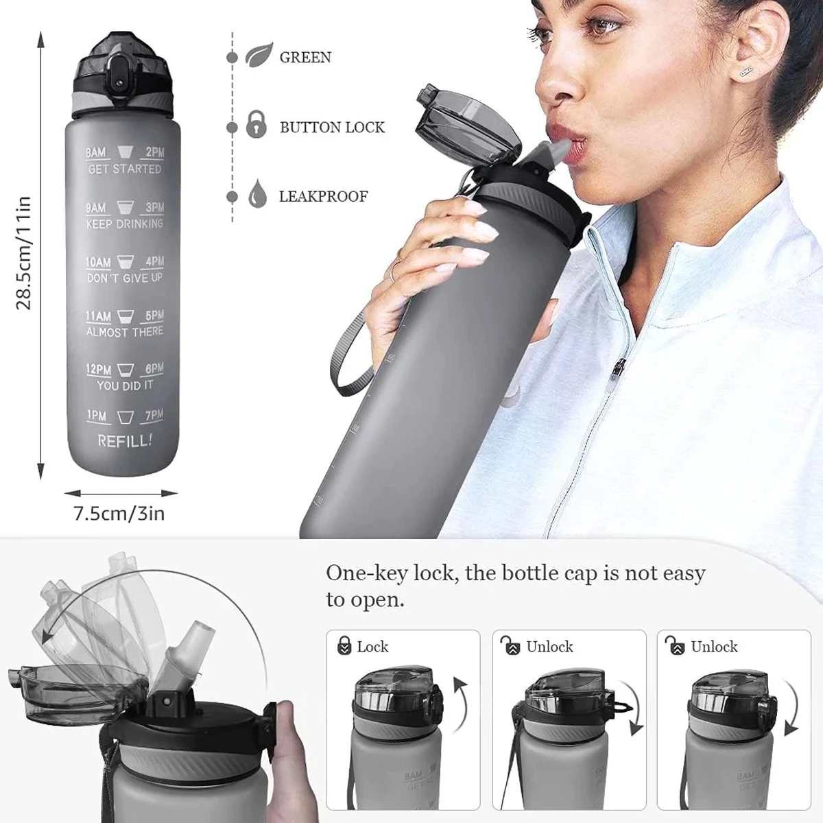 Drink elke dag genoeg water met de Drinkfles. Inclusief afneembaar Rietje. Het Rietje heeft een zeer snelle waterstroom en is ook gemakkelijk schoon te maken in de vaatwasser. Met de inspirerende quotes wordt je dagelijks gemotiveerd genoeg water te drinken. De Fles is gemakkelijk mee te nemen en ideaal voor in de sportschool, andere sport activiteiten en ook thuis en op kantoor. Met een inhoud van 1 liter hoef je de fles maar 1 keer bij te vullen zodat u gemakkelijk aan 2 liter water per dag komt. Blijf gehydrateerd, blijf gezond!!