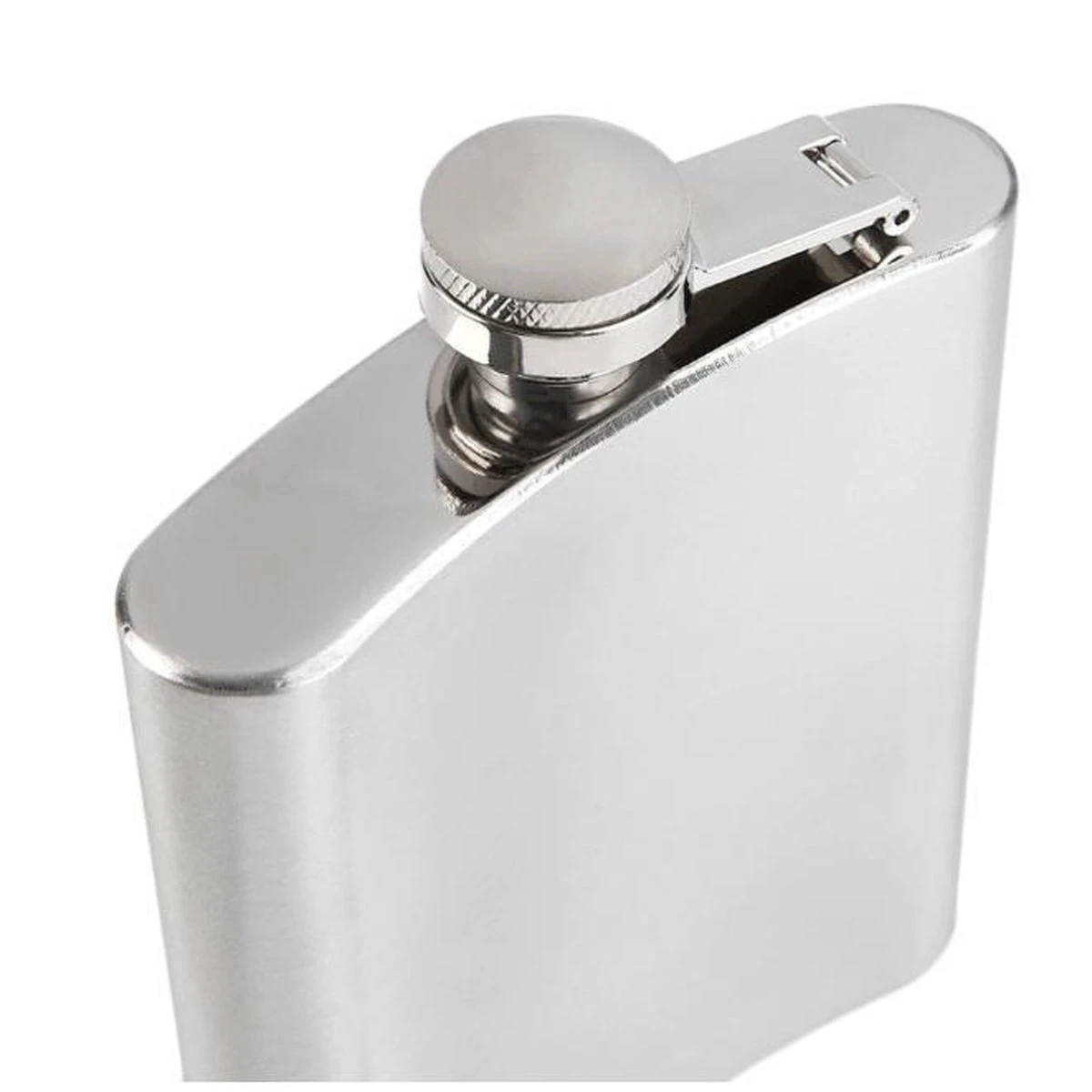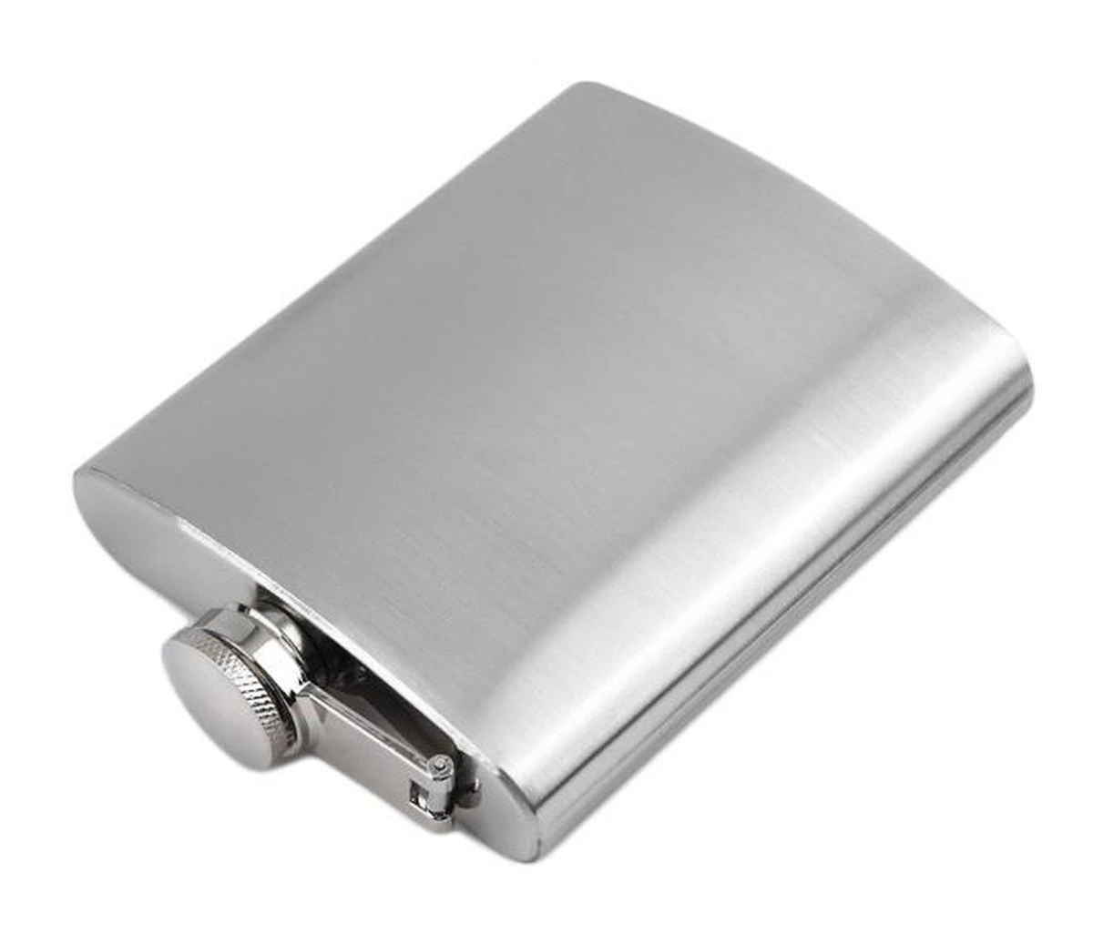 Heupfles 200 ml van RVS. Heupfles van roestvrij staal met schroefdop. De inhoud is ongeveer 200 ml. Formaat: 9 x 12 cm.