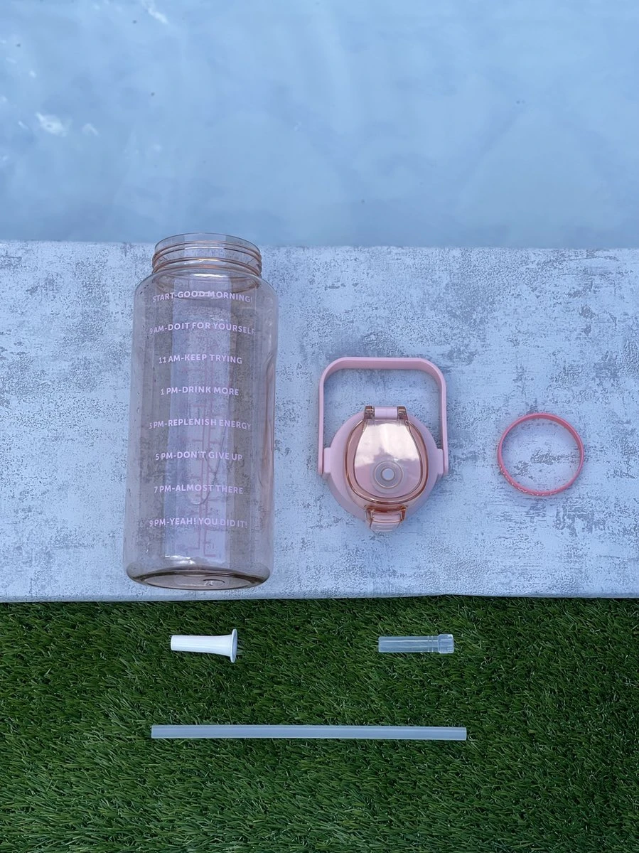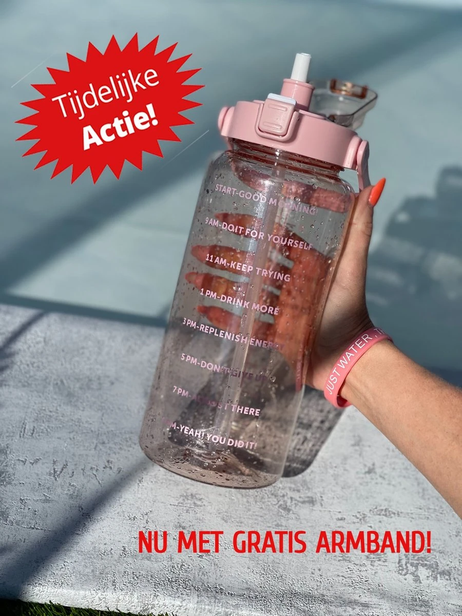Merkloos Waterfles 2 Liter – Waterfles Met Rietje – Grote Waterfles – Sportbidon – Twee Liter Waterfles – Sportfles – Sportfles Fitness – Bottle 2 Liter- Drinkfles – Schenkfles – Roze Transparant – Gratis Armband – Waterflessen