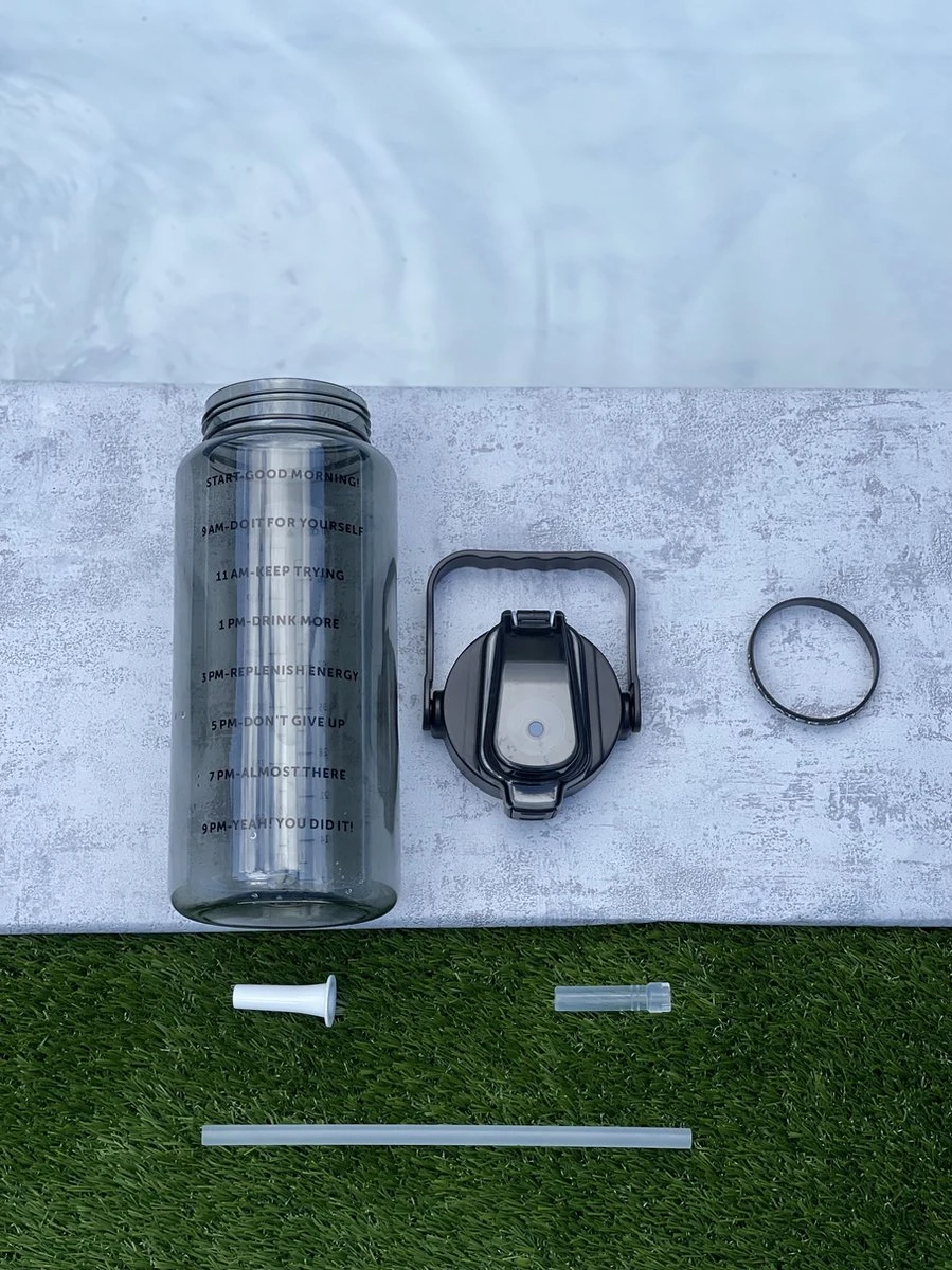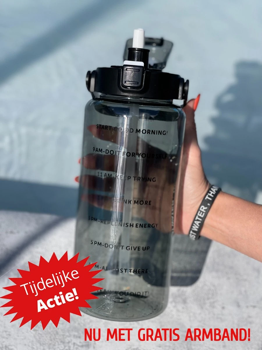 Merkloos Waterfles 2 Liter Zwart Transparant – Gratis Armband – Waterfles Met Rietje – Grote Waterfles – Sportbidon – Twee Liter Waterfles – Sportfles – Sportfles Fitness – Bottle 2 Liter- Drinkfles – Schenkfles – Zwart Transparant – Armbandje – Waterflessen