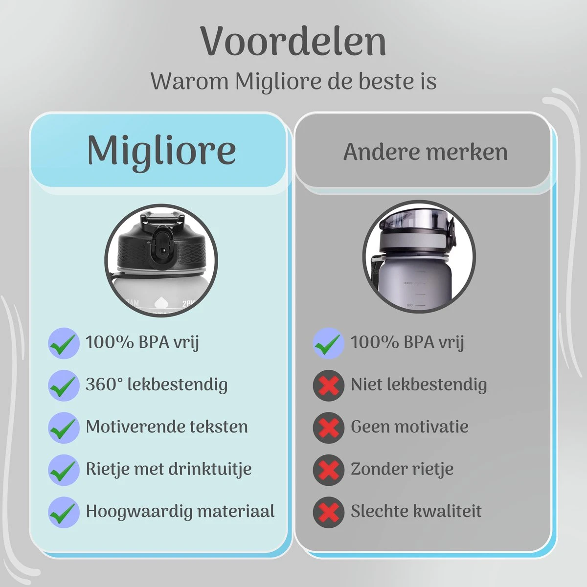 Wist je dat 85% van de mensen te weinig water drinkt? Voorkom klachten zoals hoofdpijn, vermoeidheid en concentratieproblemen met de Migliore Drinkfles.