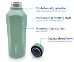 TIGR The Athlete – Drinkfles – Waterfles Met Fruit Filter – 1000ml – Groen – Met Mengbal Voor Shakes