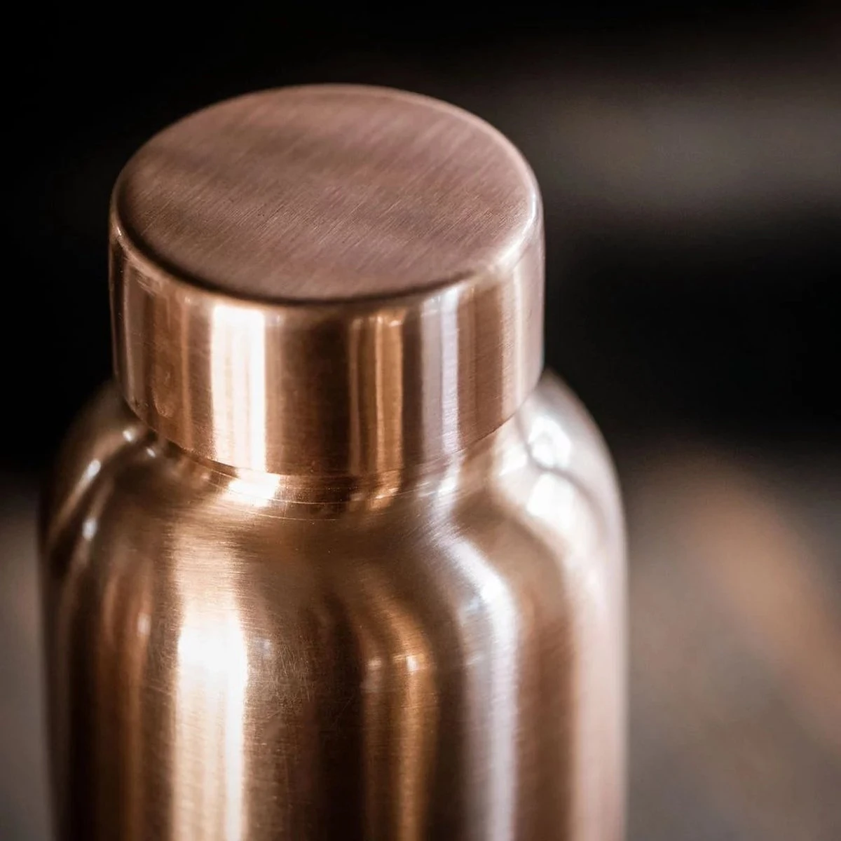 Door natuurlijke oxidatie verkleurt koper in de loop der tijd. Tevens kan het materiaal vlekken gaan vertonen. Dit zijn beide natuurlijke eigenschappen van koper en heeft geen negatief effect op het drinken uit een koperen fles of beker. Ook kunnen er oneffenheden in het materiaal zitten: dat hoort bij de natuurlijke eigenschappen van koper.